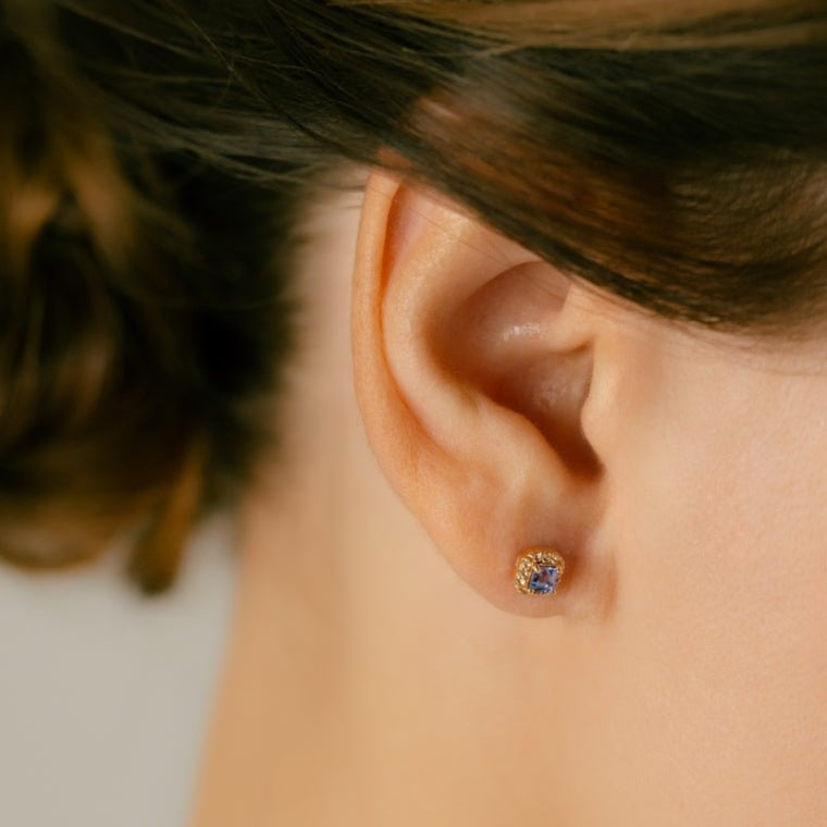 やや淡い色合いのタンザナイトとトパーズのやさしい輝き。主張しすぎない控えめな存在感に仕上げられた使い勝手の良いパーツです。