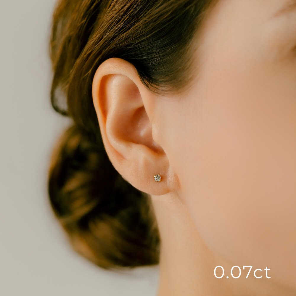ダイヤがキラッキラでずっと眺めてしまいます!やっぱり一粒ダイヤのパーツが一番シンプルで使いやすいのでサイズ違いで今回0.03をお迎えしました。小さくても耳では存在感抜群です👂✨