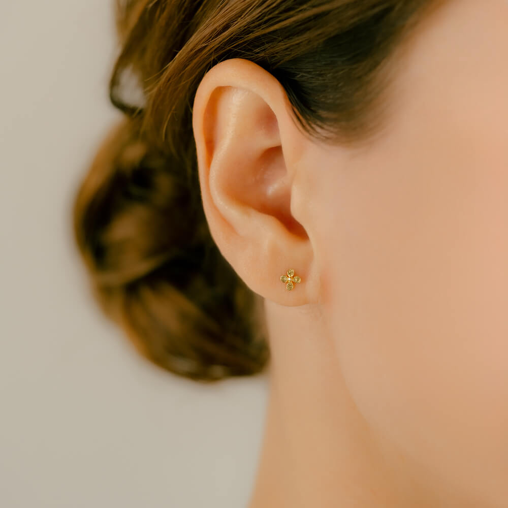 ストーン無しのゴールドの小さな花が耳にちょこんと着いているのがとっても可愛いです。