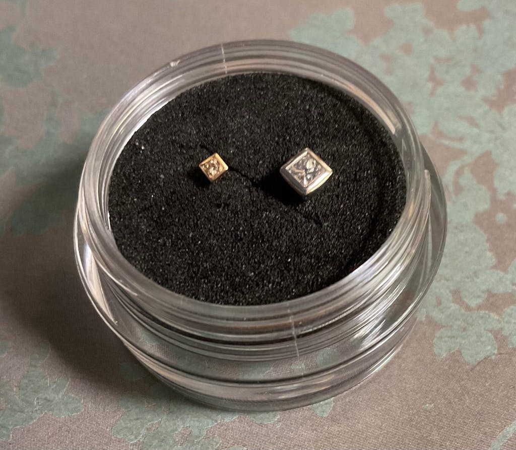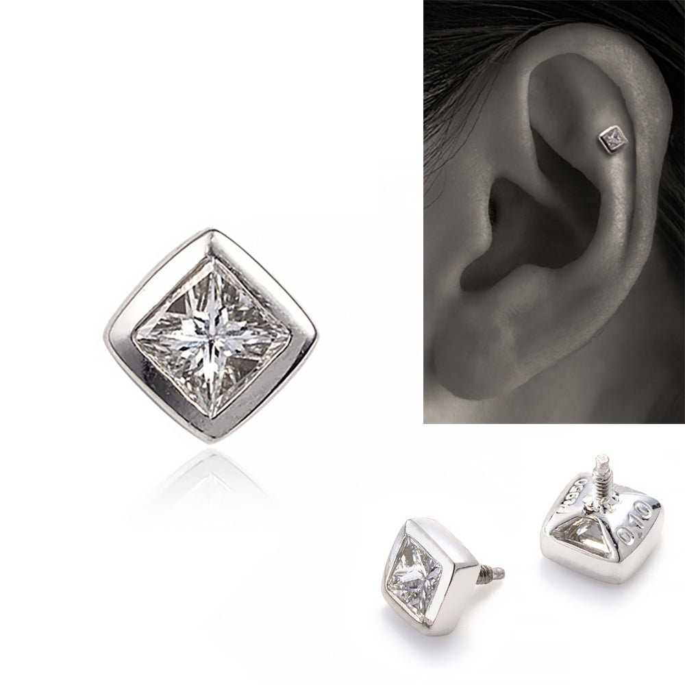 Princess-cut diamond earring parts. Snag-freeBezel SettingSo it's also recommended to leave it on.