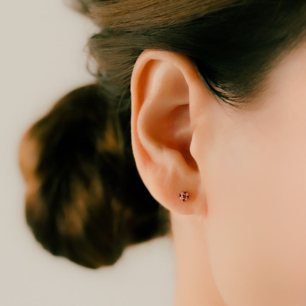 A vivid, highly transparent red and the refined sparkle of champagne-colored diamonds. The three-dimensional design is captivating even from angled views.