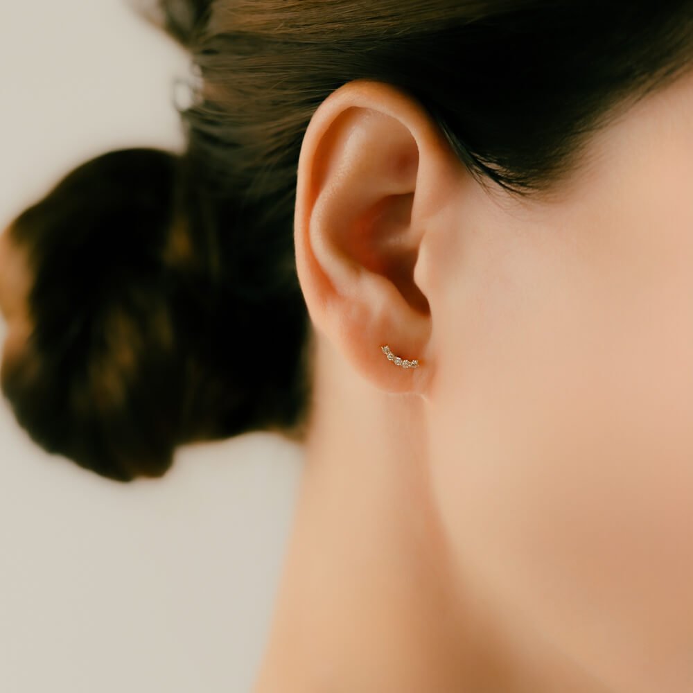 Diamond sparkle that follows the line of the ear. A piece with a moderate size that's cute and easy to wear.