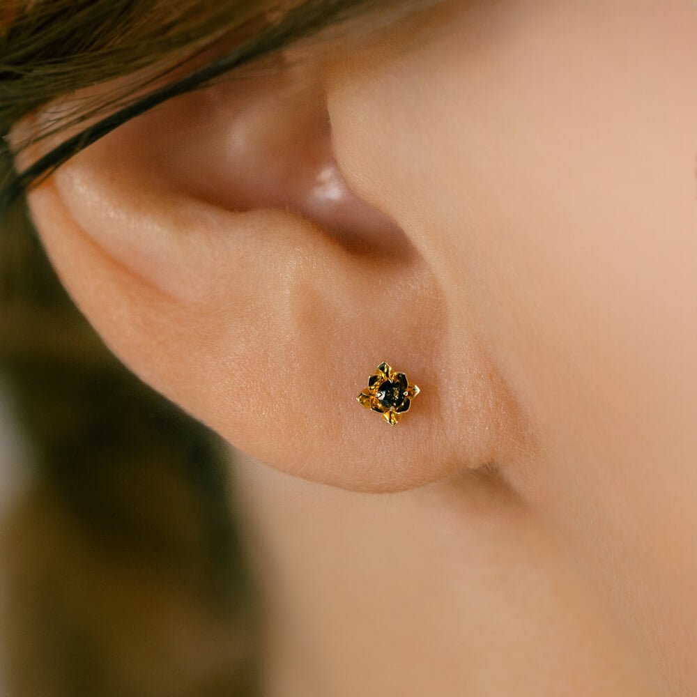The delicate petal sculpting and the chic smoky quartz tones create a calm, grown-up atmosphere. Though small, the three-dimensional floral design gives the flower a noticeable presence, subtly adding a cute charm wherever it's worn.