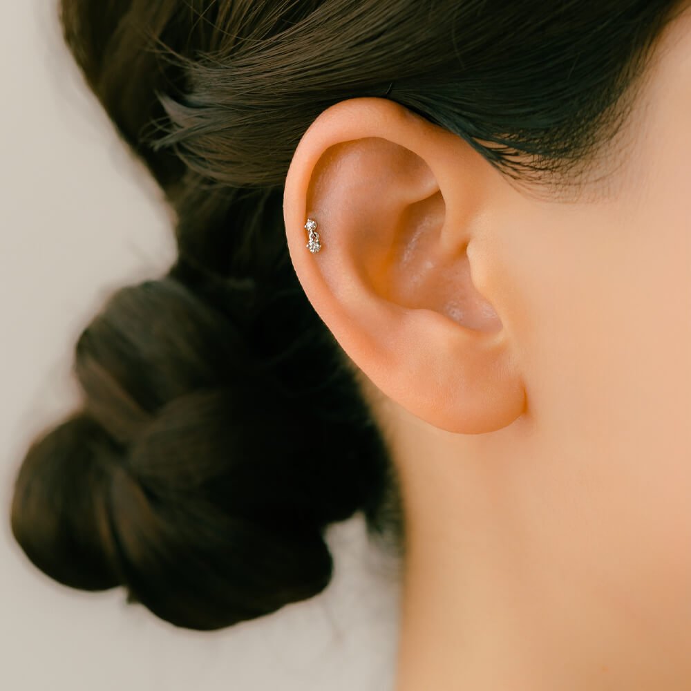 The diamond sparkles with a subtle shimmer. These ultra-small parts fit perfectly in tight spaces like the tragus or forward helix.