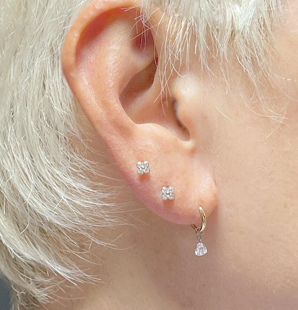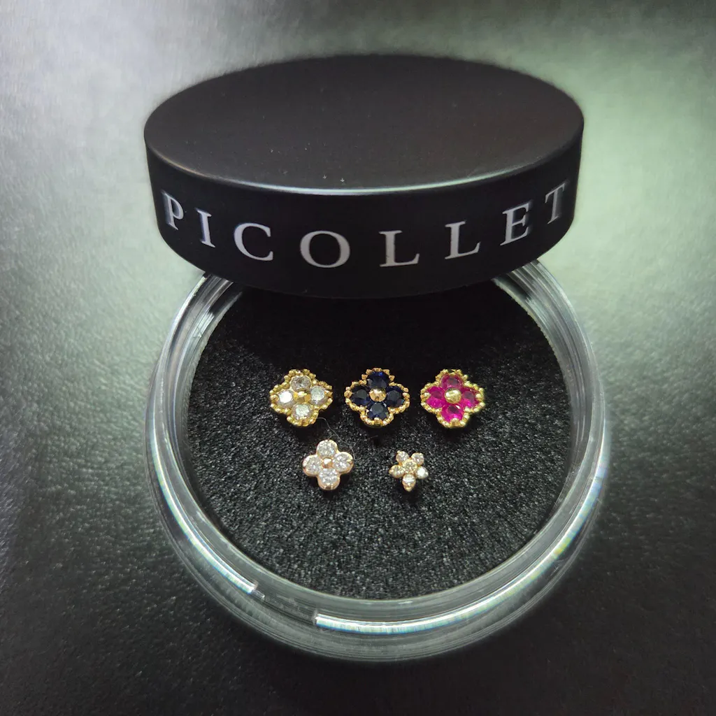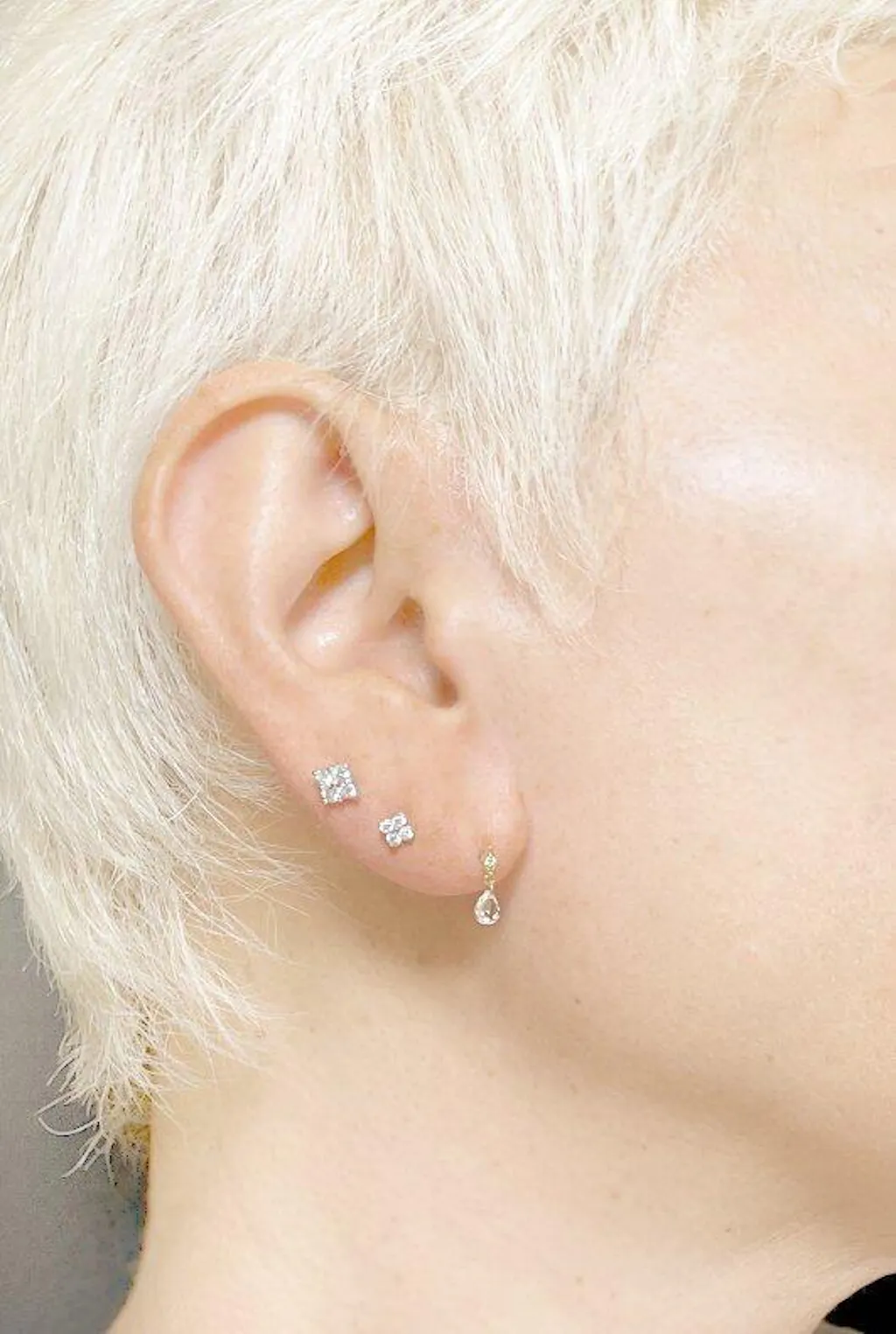 A petite flower motif whose individual diamonds still make a strong impression. The symmetrical design is easy to wear on any placement.